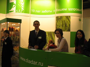 Продукция компании ДИАДАР, ежегодно представляемая на выставке ПРОДЭКСПО, пользуется огромным вниманием. Все большее количество посетителей приходят именно для того, чтобы ознакомиться с нашим ассортиментом. Наши партнеры и клиенты отмечают постоянно растущее качество работы компании ДИАДАР. Специалистами по закупкам проведено множество переговоров с производителями и поставщиками диетической и диабетической продукции. Так, например, ООО "Эль-Про" предоставила ЗАО "ДИАДАР" эксклюзивные права на реализацию биохлебцев "Эльмика" в торговых точках Санкт-Петербурга и Новосибирска, а компания "Рыбные промыслы-М" расширила территорию действия эксклюзивных прав ЗАО "ДИАДАР" за счет г. Новосибирска и Новосибирской области.